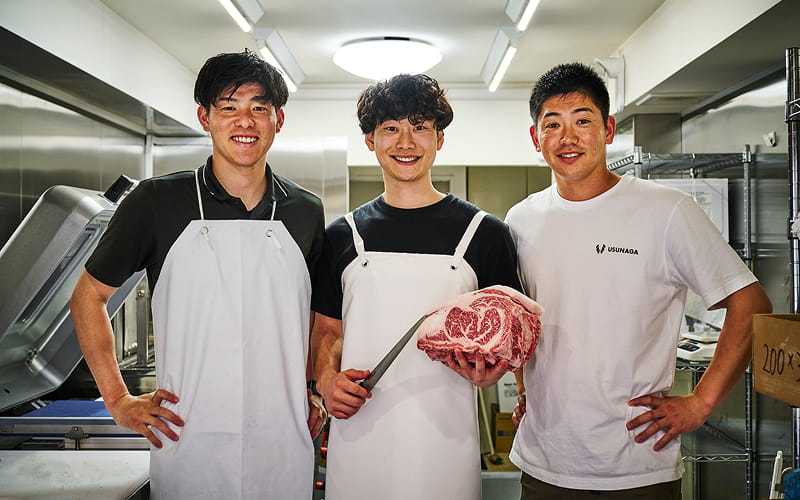大学まで野球一筋でしたが、将来を考えた結果、いずれ家業に戻ることを前提に、精肉店での修行をはじめました。当時、すでに兄が牧場で牛の生産や肥育を担当していたため、自分は肉を加工し、販売するプロとしての道を極めようと決めたんです。4年ほど修行を積んだあと、うすなが牧場の卸事業へ加入しました。僕の仕事は、単に肉を売るだけではありません。お客様の経営の相談に乗らせていただき、お店の繁盛を一緒に考え、そのためのお肉を加工し、販売する。その質を高めるために加工や販売の腕を日々磨き続ける。「店舗のパートナー」という自覚を持って仕事をしています。当面の目標は、目の前のお客様に全力で向き合い、向き合うお客様の数を増やしていくこと。そしていつか、うすなが牧場が掲げる「観光牧場をつくる」というビジョンの実現に貢献したいと思っています。