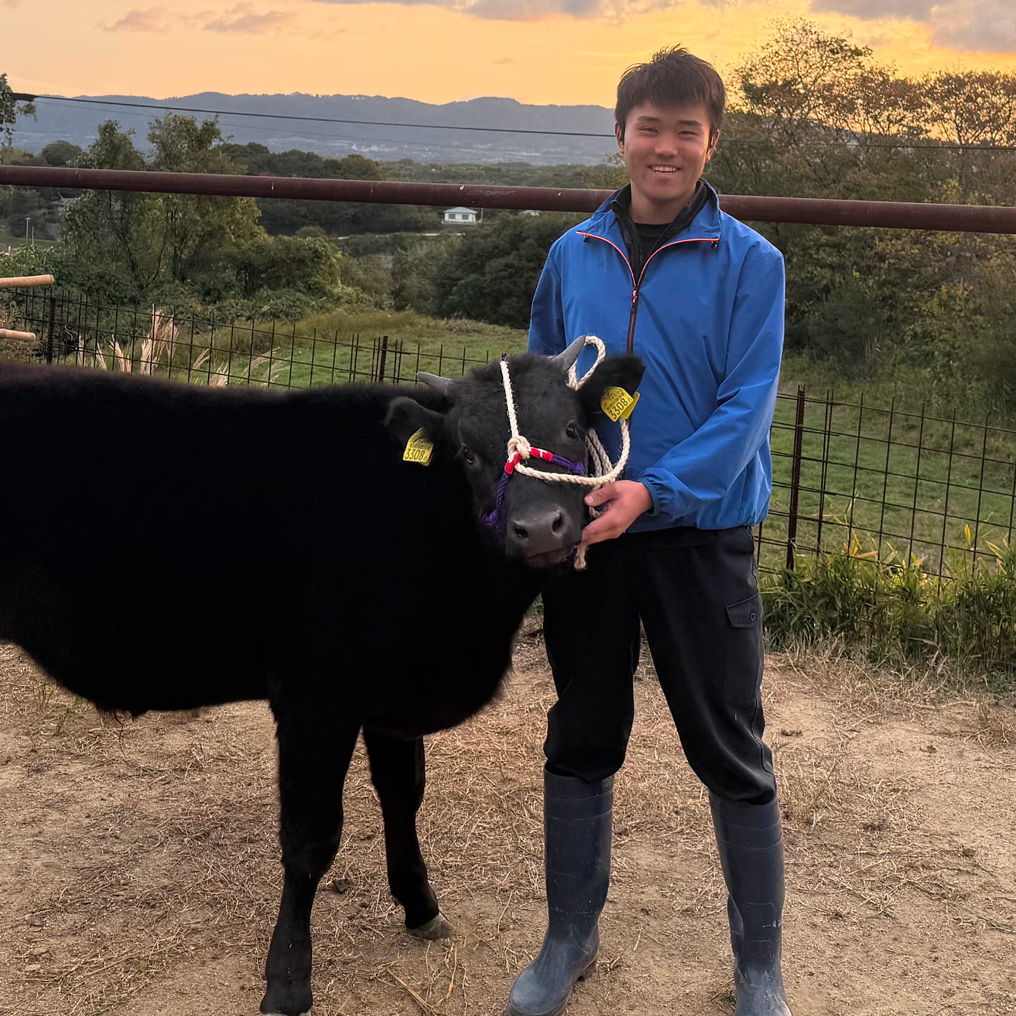 全国和牛登録協会というところで、牛の血統管理の専門職を経験した後、うすなが牧場へ来ました。僕が大切にしているのは、「牛がいかに快適に過ごせるか」ということです。言葉を話せない牛と真剣に向き合う。僕の人生は牛を学び、牛に学ぶ。そうすることで牛にとって快適な環境を整え、お客様のもとへ届けることを徹底しています。そうすることでいつか、まだまだ「汚い、臭い」という印象を持たれがちな畜産業界のイメージを払しょくしたいと考えています。現在は、うすなが牧場で子牛の哺乳や育成を担当しつつ、地元の淡路島で、自分で牛を育てる生活をしています。まずは今の仕事を通して経験とスキルを積んで、いつか、自分の夢や目標を達成してみせます。